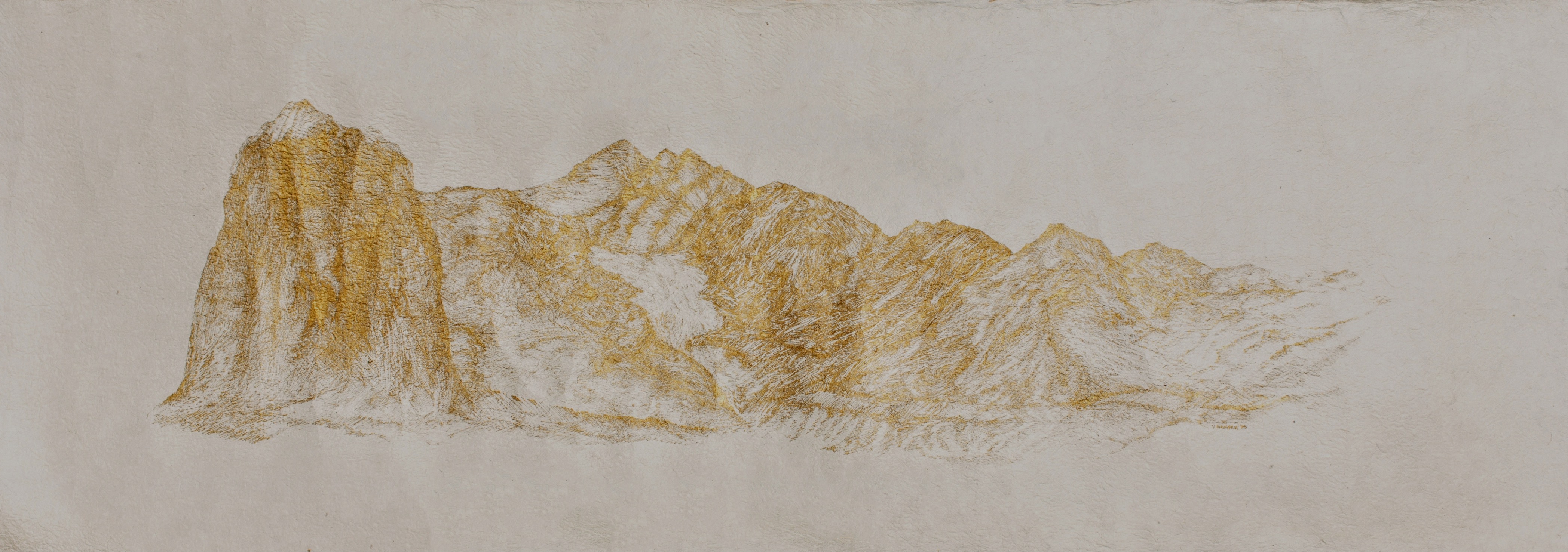 can we not make a hill out of a mountain please?, 19 x 36 cm, metallic marker on paper, 2023