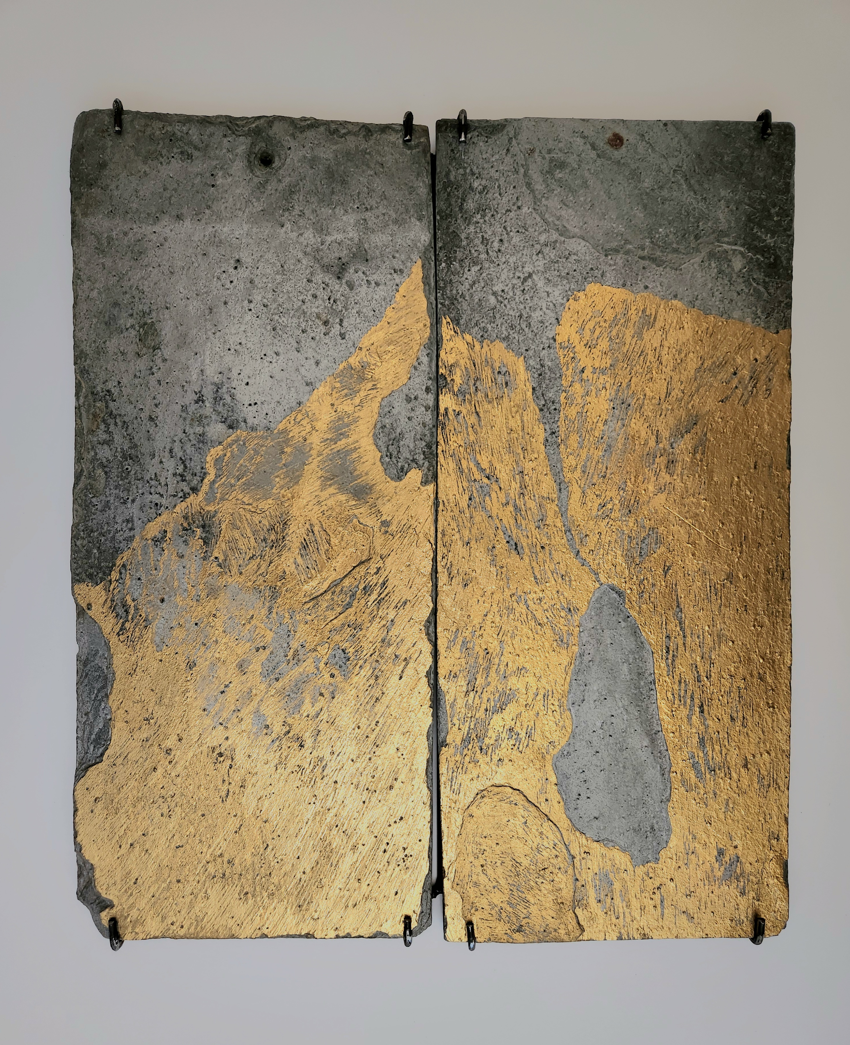 split by split, 9” x 18”, himalayan slate and resin, 2025